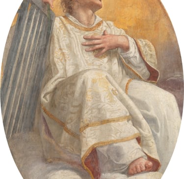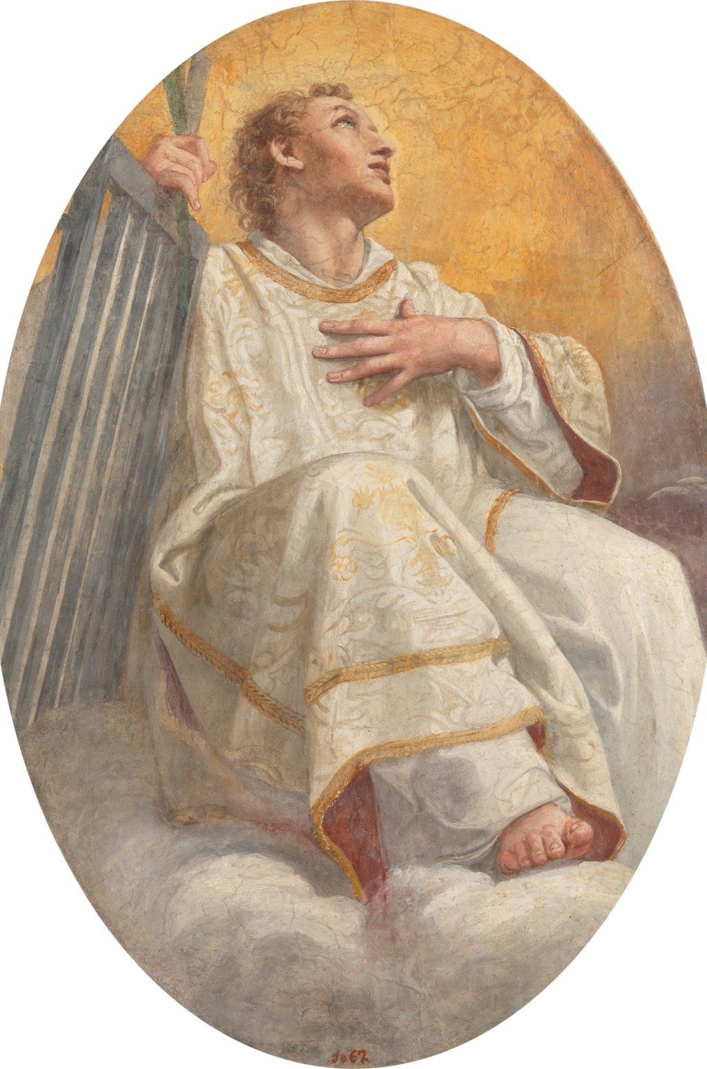 San Lorenzo de Annibale Carracci. Forma parte de Las pinturas de la capilla de la Iglesia de Santiago de los Españoles. El Museo del Prado posee tres de los óvalos que se situaban en las pechinas.